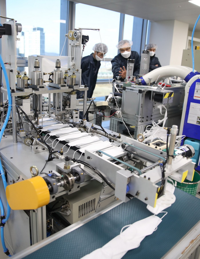 약 20만장의 원자재를 확보한 상태이며, 10일까지 30만장 분량의 원자재를 추가 확보할 계획이다. 본격 생산은 20일부터 이뤄지며, 1일 생산규모는 약 1만장에 달한다. 사업장은 아동용 소형 마스크 생산을 위한 추가 장비도 설치할 계획이다.
