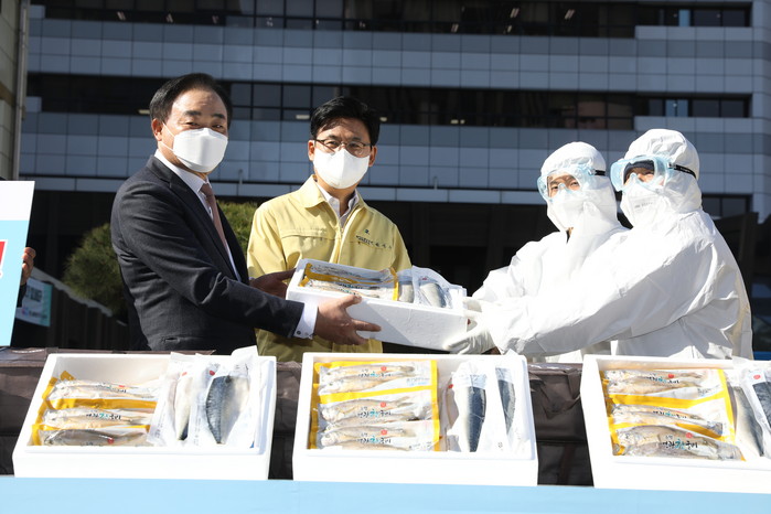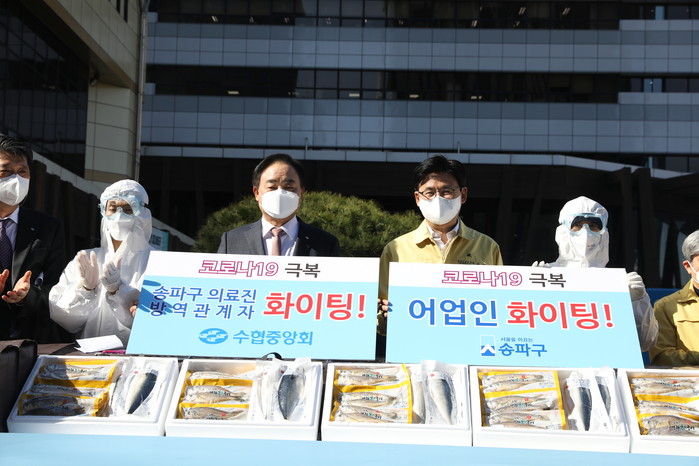 수협중앙회는 1년 이상 지속되고 있는 코로나19 사태로 격무가 이어지는 송파구청 의료진과 방역관계자 200여명에게 감사와 격려의 마음을 담아 수산물 선물세트를 전달했다.