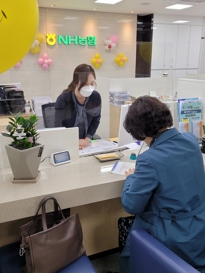 | ▲2일 강서농협 마곡지점에서 한 고객이 「NH농촌으로 적금」에 가입하고 있다 . |