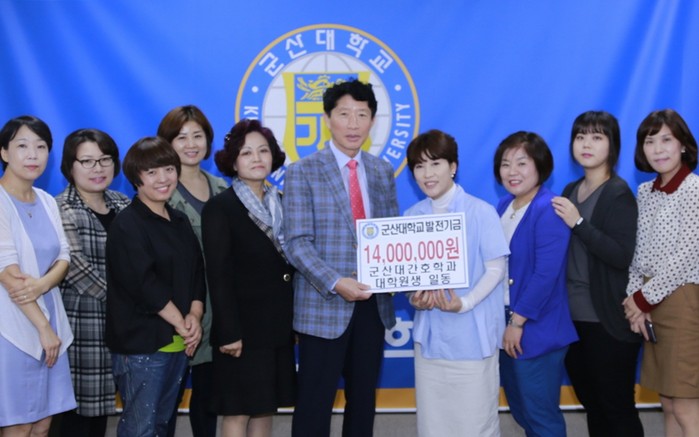 24일 김선화 씨 등 군산대학교 간호학과 대학원생 14명은 십시일반 모금한 대학발전기금 1400만원을 나의균 총장에게 전달했다.