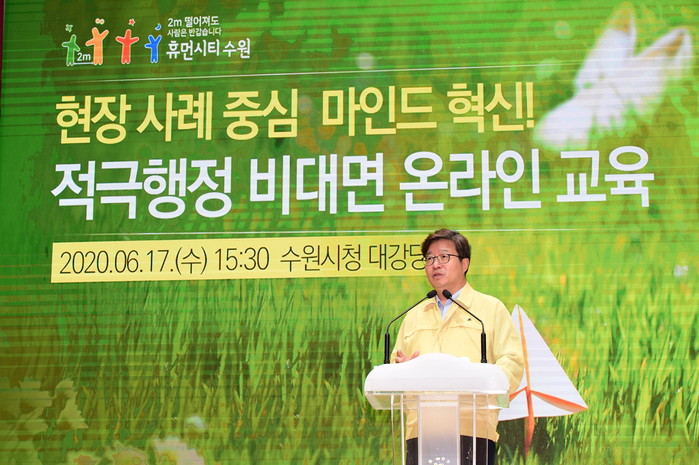 염 시장은 지난 17일 열린 ‘수원시 공직자 마인드 혁신을 위한 적극행정 온라인 교육’에서 “공직자들이 무엇이든 적극적으로 할 수 있도록 격려해야 한다”이라며 “공직자들이 창의적으로 정책을 추진할 수 있는 환경을 만들 것”이라고 말했다.
