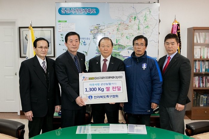 시 관계자는 “어려운 이웃을 위해 따스한 정을 나누는 전북도축구협회에 깊은 감사를 드리며 행복 나눔을 통해 삭막해져가는 우리 사회에 따뜻한 온기를 불어 넣는 좋은 계기가 됐다”며 고마움을 전했다.