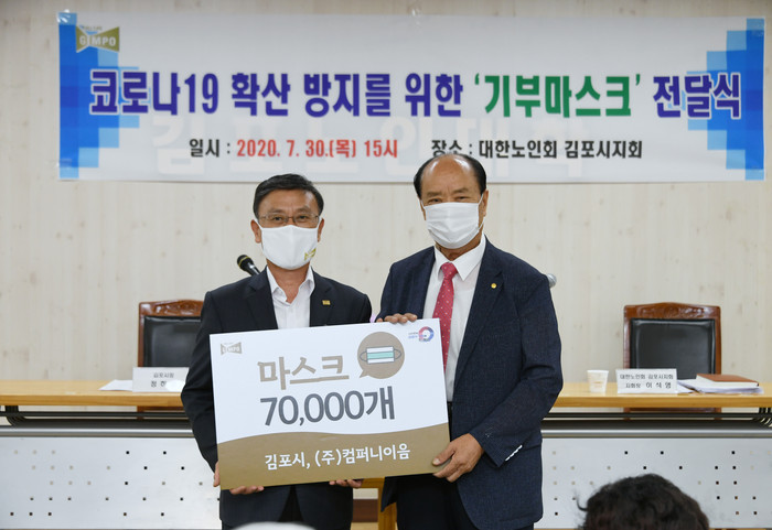 [로컬세계 김병민 기자]경기 김포시는 지난달 30일 어르신들의 코로나19 감염 예방을 위해 마스크 7만 장을 대한노인회 김포시지회에 전달했다고 4일 밝혔다.