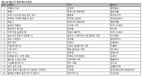 ▲예스24 6월 1주 종합 베스트셀러.(예스24 제공) |