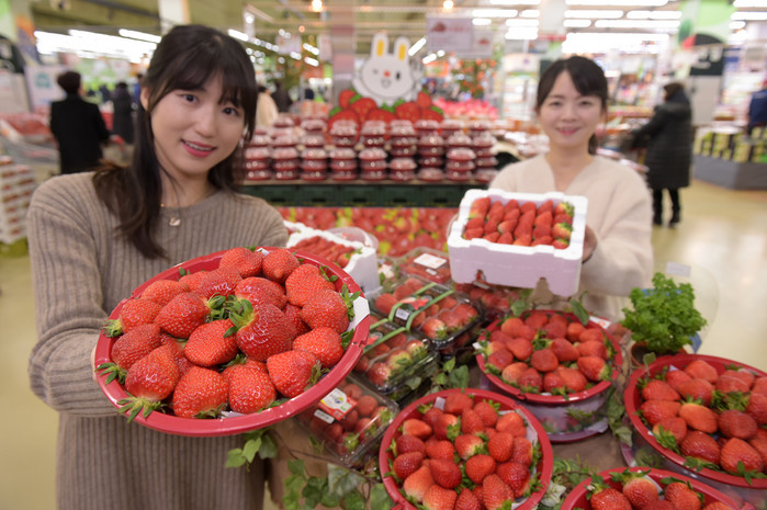 | ▲서울 서초구 농협유통 하나로마트 양재점에서 직원들이 신선한 딸기를 선보이고 있다. 농협유통 하나로마트 양재점·창동점에서는 20일부터 26일까지 7일 동안 딸기를 할인 판매하며, NH카드로 결제 시 추가 할인을 받을 수 있다.(농협유통 제공) |