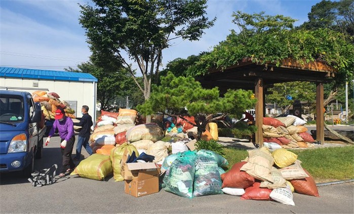 이날 행사의 참여자들은 아침 일찍부터 평소 마을별로 모아두었던 헌옷, 신발, 이불 등을 면사무소에서 선별과정을 거쳐 재활용업체에 판매했다.