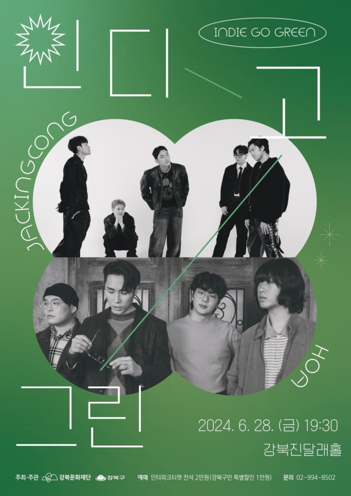 ‘인디 고 그린’은 최근 인디씬에서 가장 주목받고 있는 밴드 ‘잭킹콩’과 ‘호아’가 출연하며, 각기 다른 음악적 색채를 한 번에 만날 수 있는 특별한 무대가 될 것으로 기대를 모으고 있다.