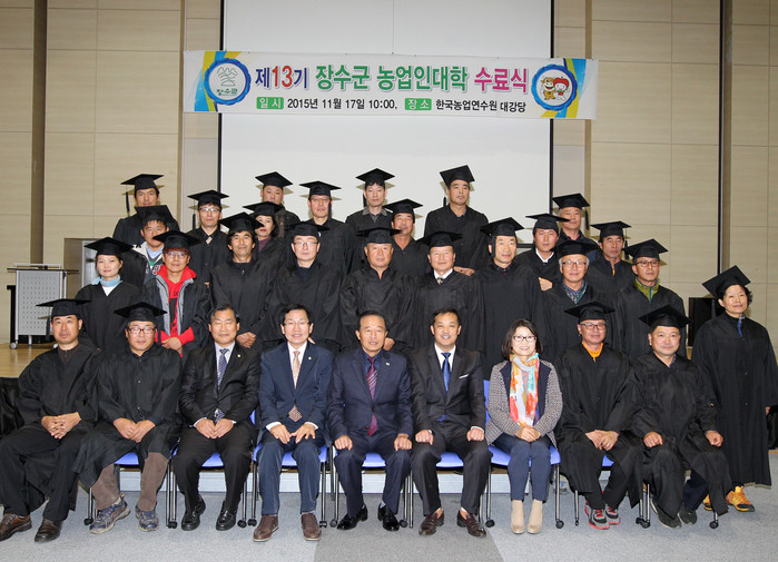 ▲지난 17일 한국농업연수원에서 장수군 농업인대학 수료식이 진행되고 있다. |