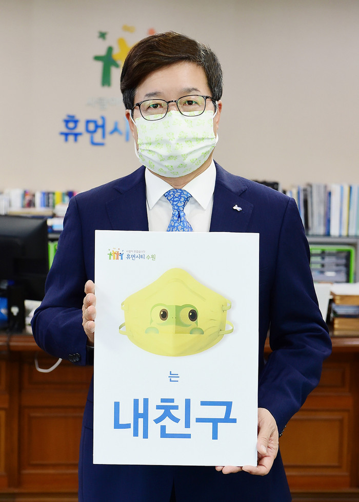 수원시는 6월부터 ‘마스크 착용 캠페인’을 전개하고 있다. 수원시 대표 캐릭터인 ‘수원이’를 활용해 ‘마스크 착용 생활화’ 홍보물을 제작하고, 여러 경로로 시민들에게 전달하고 있다.