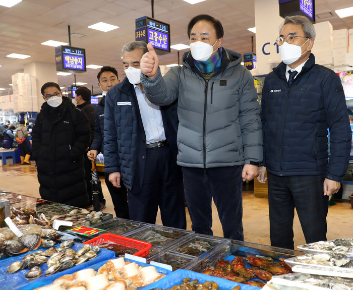 임 회장은 수산물 판매 현장을 직접 둘러보고 “극심한 한파에 코로나까지 겪으면서 노고가 크다”며 시장 종사자들을 격려했다.