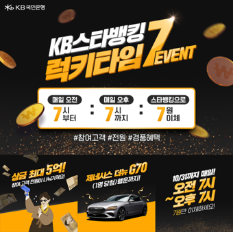 ▲「돈 버는 습관 KB스타뱅킹 럭키타임 7」 이벤트 이미지 |
