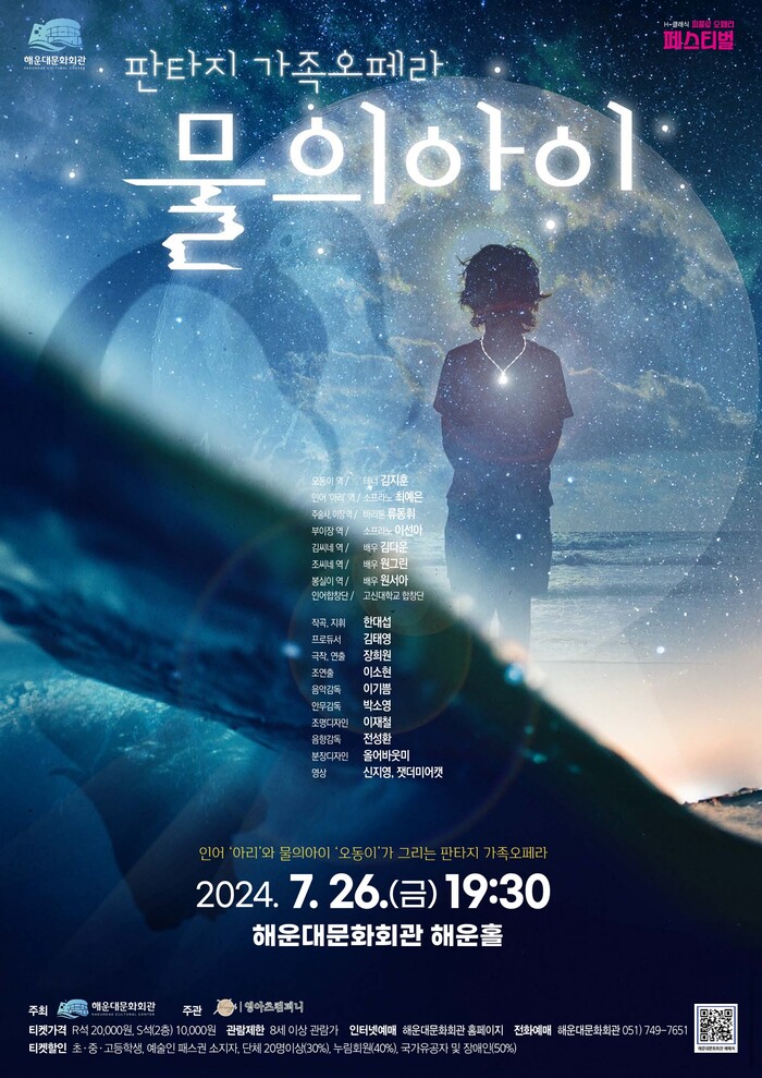 판타지 가족오페라 ‘물의 아이’는 바다에서 자란 소년 ‘오동이’와 바다를 지키는 수호자 인어 ‘아리’의 우정을 그리고 있다.