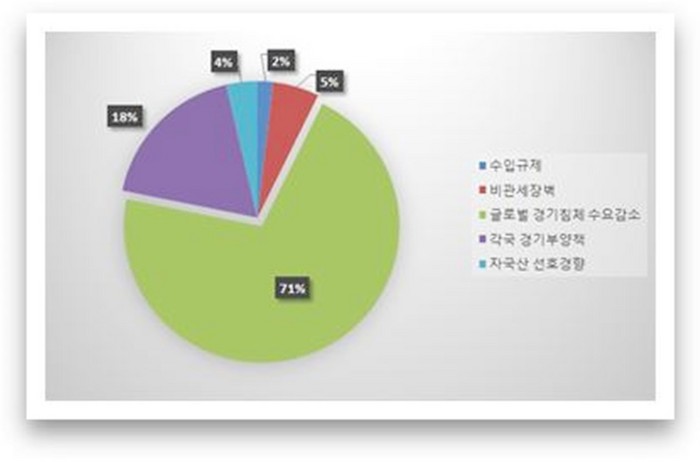 보호무역주의 극복을 위해서 정부가 가장 중점적으로 추진해야 할 정책과제에 대해서는 ‘품질제고를 위한 기술개발 지원(34.1%)’을 우선적으로 꼽았으며 ‘FTA 등 다자간 무역협정 확대’가 두 번째로 높은 응답률(24.7%)을 기록했다.
