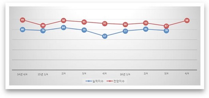 대전상공회의소가 최근 지역 제조업체 300개사를 대상으로 ‘2016년 4분기 기업경기 전망조사’를 실시한 결과 기업경기실사지수(BSI ; Business Survey Index)가 기준 수치 100 이하인 98로 집계됐다고 밝혔다.