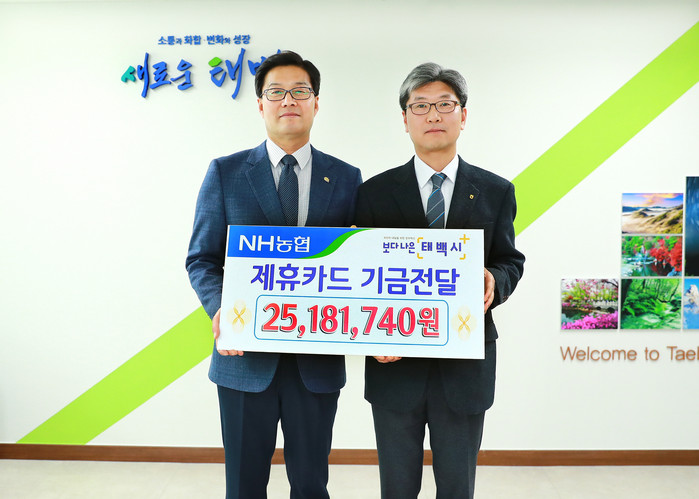 NH농협은행은 지난 2006년부터 태백시와 협약을 맺어 매년 제휴카드( 태백사랑카드‧법인카드‧마이홈카드)의 이용액 중 일정금액을 적립해 출연하고 있다.