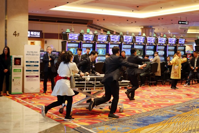 오전 11시부터 진행된 이번 훈련은 카지노에서 발생 가능한 시나리오를 바탕으로 화재진압과 화재로 인해 발생한 환자대처, 고객대피 등 종합 상황대처 훈련으로 진행됐다.