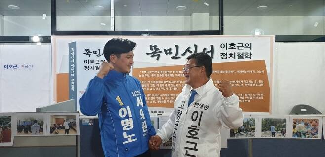 아버지인 무소속 기호5번이호근 고창군수 후보와 아들 더불어민주당 기호1번 이명노 광주광역시 서구 제3선거구(풍암동, 화정3·4동) 예비후보가 이들이다
