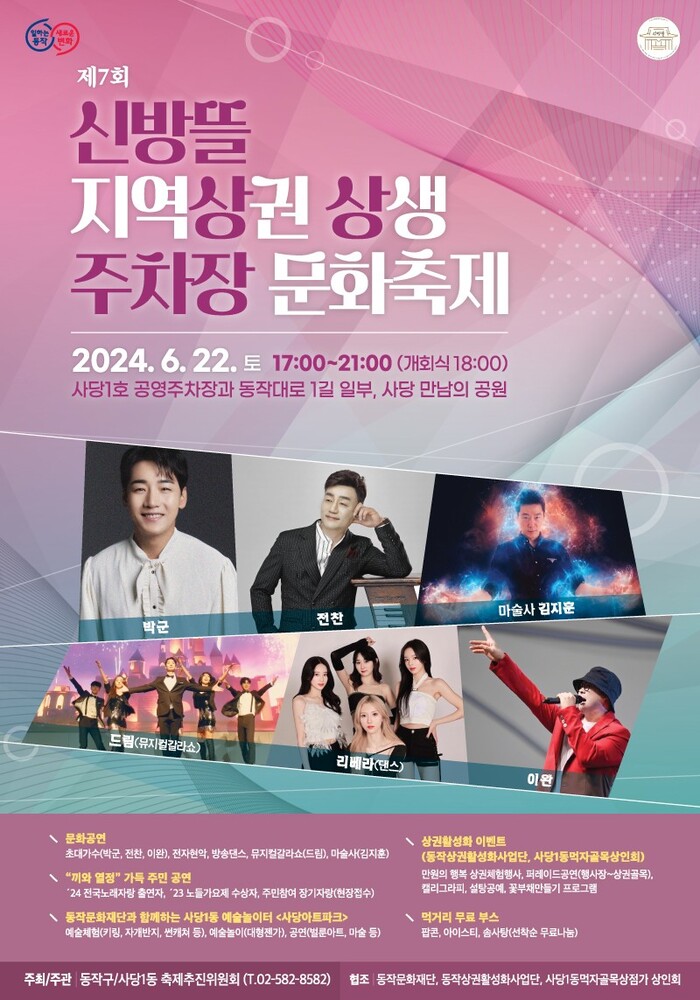 [로컬세계 = 임종환 기자]서울 동작구는 지역 경제를 활성화하고 주민 간 상생과 화합의 장을 마련하고자 오는 22일 사당1호 공영주차장 일대에서 문화축제를 개최한다고 20일 밝혔다.
