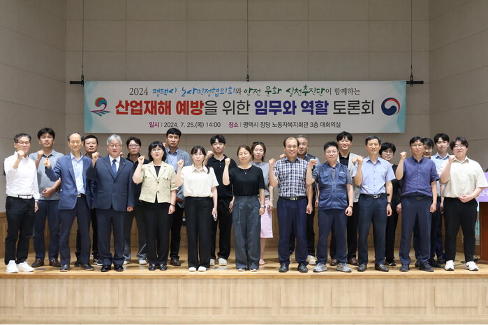 [로컬세계=김병민 기자]경기 평택시노사민정협의회가 고용노동부 평택지청, 한국산업안전보건공단 경기남부지사와 공동으로 지난 25일 평택시 장당노동자복지회관에서 산업재해 예방을 위한 기관별 임무와 역할에 대한 토론회를 개최했다고 26일 밝혔다.
