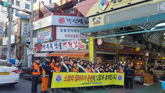 부산진소방서 관계자는 “시장에 산재한 골든타임 확보 방해요인은 상인 각자의 자율적 실천의지 없이는 개선될 수 없다”며 “소방통로상에는 차광막·좌판 등 적치물은 일체 없도록 하고 소방관서 훈련에도 적극 동참해 주길 바란다”고 말했다.
