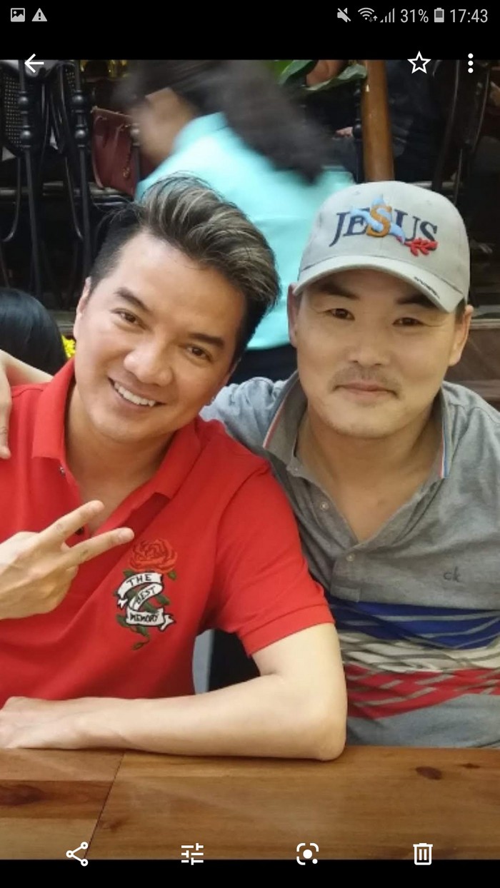 ▲우보현 작가(사진 오른쪽)와 함께 포즈를 취한 베트남 최고 인민가수 담빈흥 |