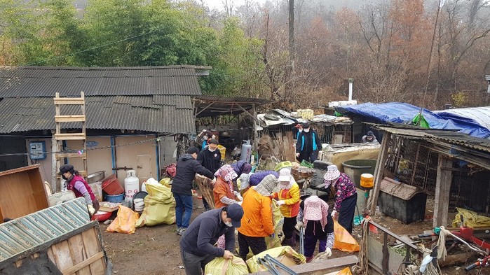 해당 가구는 마당에 쓰레기와 폐가전을 방치해두고 쓰러져가는 집의 각 방에 한 몸 누일 수 있는 정도의 공간에서 생활하고 있어 주거환경개선이 매우 필요한 상황이었다.