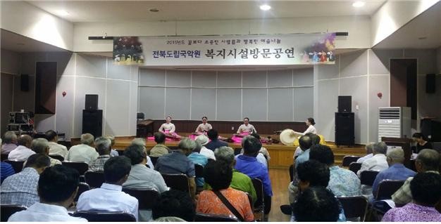 지난달 31일, 장수군 문예복지관에서 진행된 ‘꽃보다 소중한 사람들과 행복한 예술나눔’ 공연에서는 도립국악원 창극단, 무용단, 관현악단 단원들은 을 주제로 무용, 가야금병창, 진도북춤, 장구 공연을 펼쳤다.