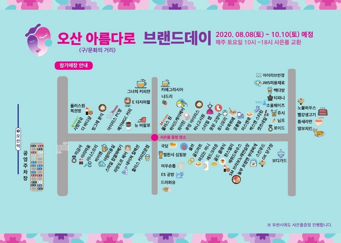 7일 오산시에 따르면 이번 행사는 ‘오산 문화의거리’에서 ‘오산 아름다로’로 새롭게 태어나는 상점가를 홍보하고 신규 BI를 알리기 위해 마련했다고 설명했다.