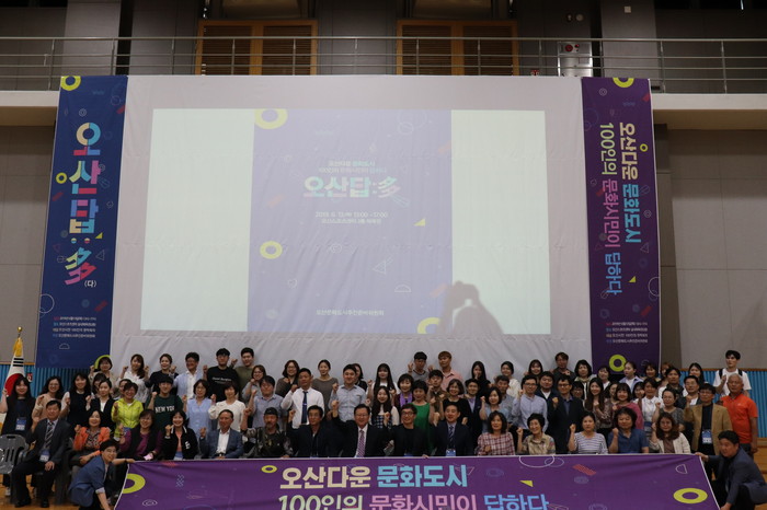 두 번째로 시민 컨퍼런스와 100인의 라운드 테이블을 개최한 점이다. 앞서 이음문화 시민 스쿨링을 지도해 온 포항 문화재단의 차재근 대표이사의 기조발제에 이어 원주시와 청주시, 남원시 등 1차 예비도시 문화도시 실무 추진 담당자들의 주제 강연으로 진정한 오산시민이 만들어가는 문화도시를 설계하는 시간을 가졌다.