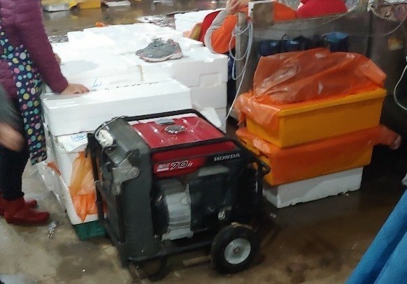 | ▲수산물 상자 옆에 놓여져 있는 디젤발전설비.(수협 제공) |
