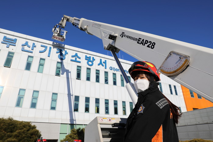▲부산 첫 여성 소방사다리차 운용사 송주진 소방관.(기장소방서 제공) |