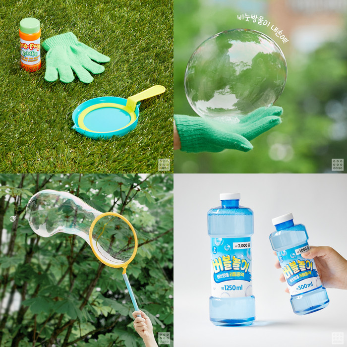 해수욕장에서 아이와 함께하기 좋은 모래놀이 세트는 소프트한 재질을 사용해 안전하게 즐길 수 있으며, 가성비 높게 구성됐다. 지난해 판매가 좋았던 버블스틱 상품은 다양한 디자인으로 출시됐고, 리필용액상품은 지난해 1000mL에서 1250mL 증량해 가성비를 높였다. 곤충 채집망은 길이를 접었다 펼 수 있어 휴대가 간편해, 캠핑장에서 아이와 함께 곤충채집이 가능하다.
