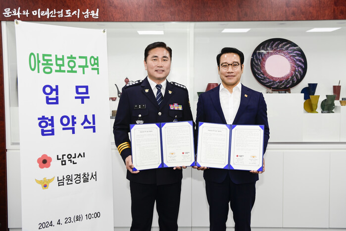 [로컬세계=이태술 기자]전북 남원시가 23일 ‘아동이 범죄로부터 안전하고 건강하게 성장할 수 있는 도시 환경 마련을 위해 남원경찰서와 ‘아동보호 업무 협약’을 체결했다.