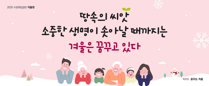 겨울편 문안은 박이도 시인의 시 ‘꿈꾸는 겨울’에서 발췌한 것이다. 지난 9~10월 진행된 ‘2020 수원희망글판 겨울편 문안 공모’에서 응모작 중 수원시 인문학자문위원회 위원들의 심의를 거쳐 선정했다.