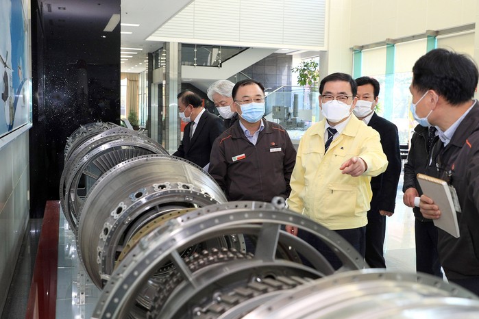 ▲허성무 창원시장이 지난 4월 28일 항공기업 한화에어로스페이스를 방문했다. |