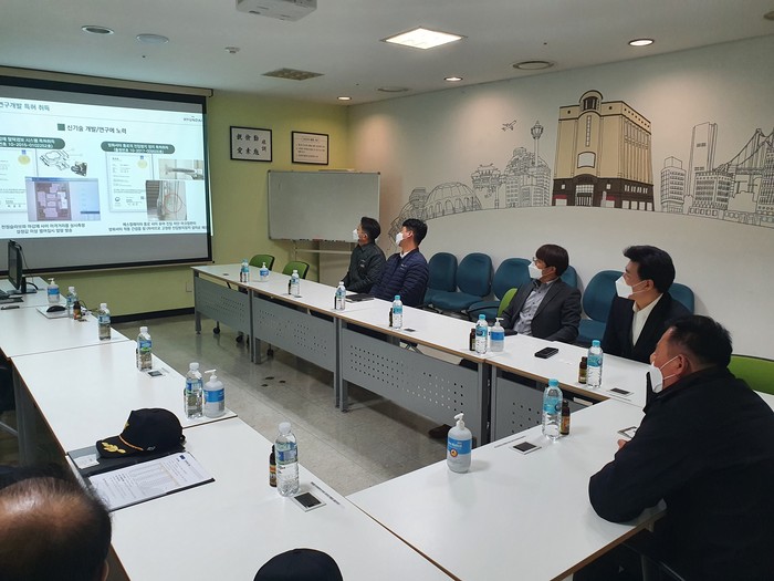 ▲부산 현대백화점 방재실 방문 청취 모습.(부산진소방서 제공) |