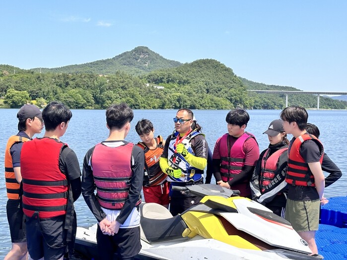 ▲의성군 낙단보 수변공원에서 5월 31일부터 6월 2일까지 3일간 경북대학교 체육학과 학생 50명이 참여하는 제트스키 교육이 실시된다.(의성군 제공) |