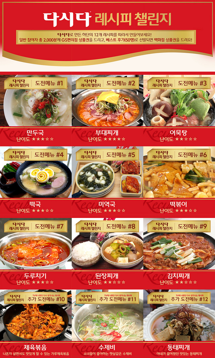 12개 메뉴 외 본인이 직접 개발한 다시다 레시피 참여도 활발