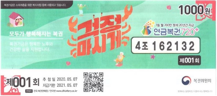 | ▲연금복권 720+ 제1회차 1등 이미지.(동행복권 제공) |