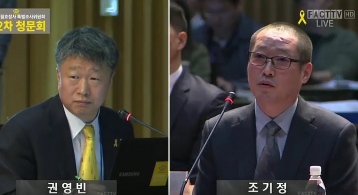 ▲28일 서울시청에서 열린 4·16 세월호참사 특별조사위원회 제2차 청문회에 권영빈 진상규명소위원장이 조기정 GMT 연구소장에게 질의하고 있다. |