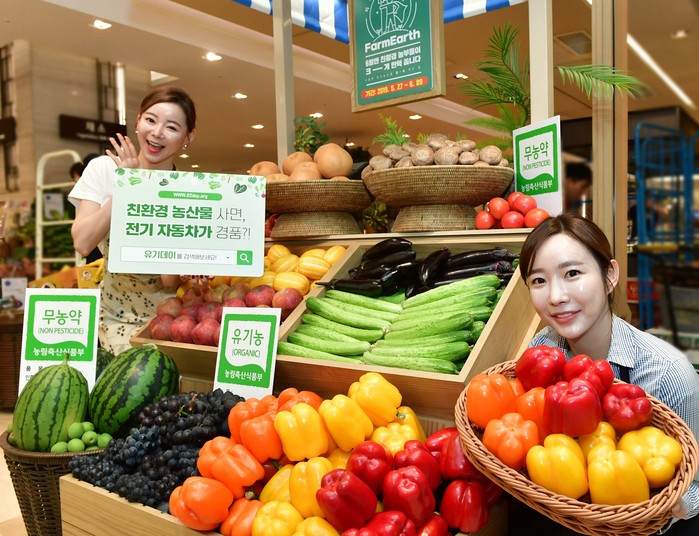 28일 서울 소공동 롯데백화점 본점에서 참가자들이 국내 최대 친환경농산물 축제 ‘유기데이’를 알리고 있다.