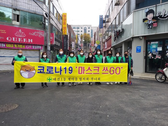 새마을협의회 회원들은 매 계절마다 아름다운 태전1동을 만들기 위해 관내 주요 거리에 꽃 화단을 조성하고 있으며, 특히 이번에는 화단 정비 후 마스크쓰Go 캠페인을 함께 진행했다.