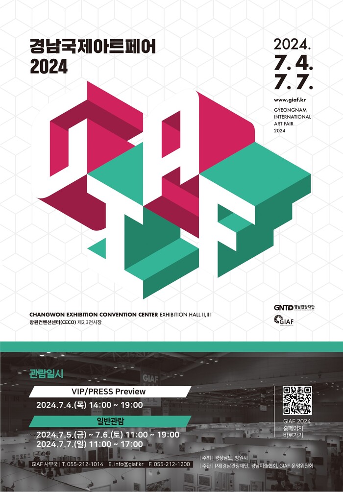 경남도와 창원시가 주최하고 경남관광재단과 경남미술협회가 공동 주관하는 ‘경남국제아트페어(GIAF 2024)’에는 경남문화예술진흥원, 경남메세나협회, BNK경남은행, 좋은데이나눔재단의 후원 아래 독일, 프랑스, 미국, 중국, 일본, 한국 등 세계 6개국 43개 국내외 유명 갤러리의 600여 작품이 전시된다.