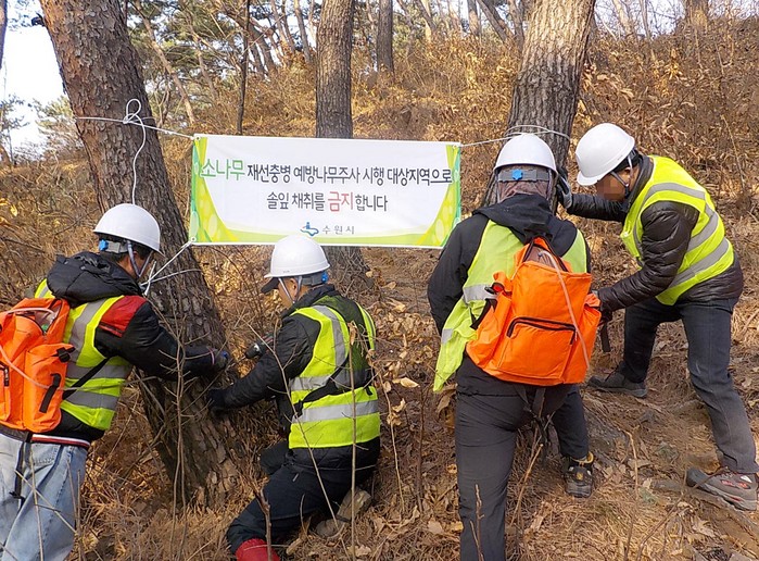 | ▲재선충병 예방 접종 모습.(수원시 제공) |