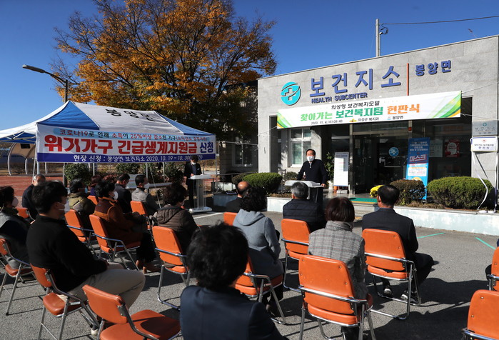 ▲찾아가는 보건복지팀 현판식(봉양면) |