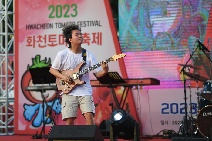 ▲ 지난해 화천토마토축제 식전공연을 진행 중인 화천이 낳은 천재 기타리스트 양태환 |