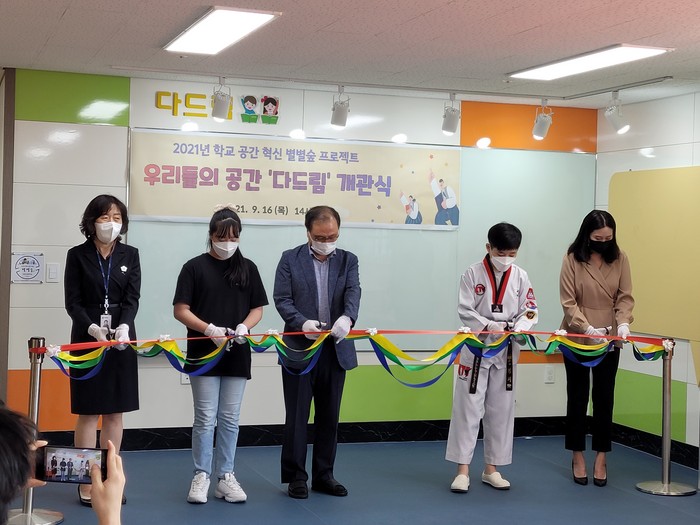 이번 개관식을 진행한 다온초등학교‘다드림’은 학교 본관 미디어실의 유휴공간을 학생들이 편하게 모여 담소를 나누고, 놀이와 독서를 할 수 있는 창의적인 공간으로 재탄생시켰다.