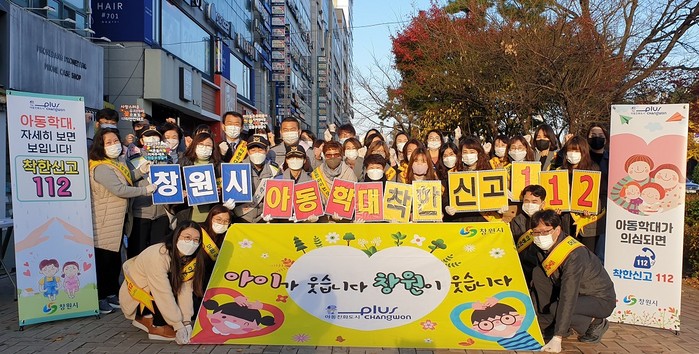 [로컬세계 한용대 기자]경남 창원시(시장 허성무)는 20일 아동학대예방의 날과 아동학대예방 주간을 맞이하여 아동학대 예방에 대한 시민들의 관심 촉구를 위해 '아이가 웃습니다! 창원이 웃습니다!!' 라는 슬로건으로 캠페인을 진행했다고 밝혔다.