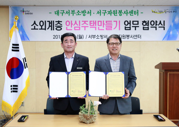 이번 협약은 대구시 최초로 서구자원봉사센터와 서부소방서의 협력을 통해 소외계층 안심주택만들기 사업의 조기 달성과 고령자 및 노약자들의 안전장치 마련을 위해 추진하게 됐다.