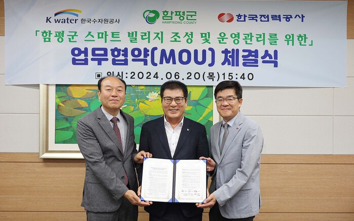 [로컬세계 = 이남규 기자]전남 함평군이 한국수자원공사 · 한국전력공사와 함께 스마트 기술적용 특화마을(스마트빌리지) 조성을 위한 업무협약을 체결했다.